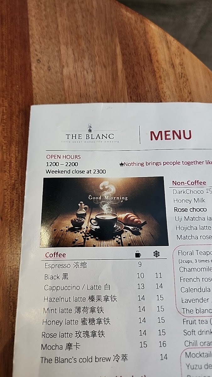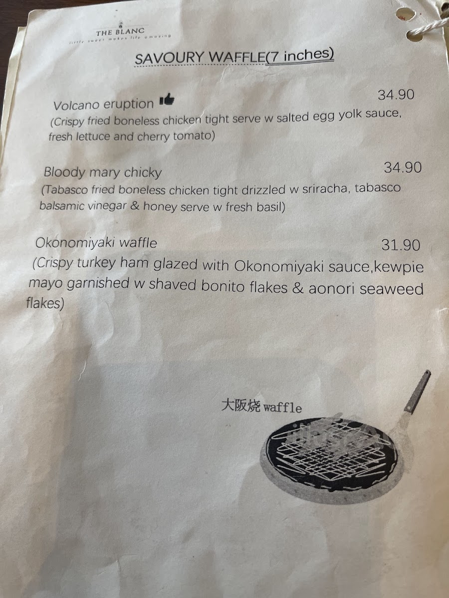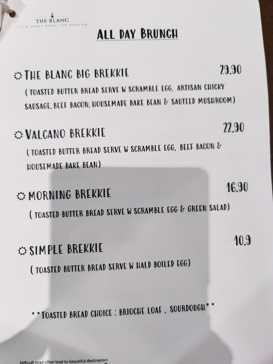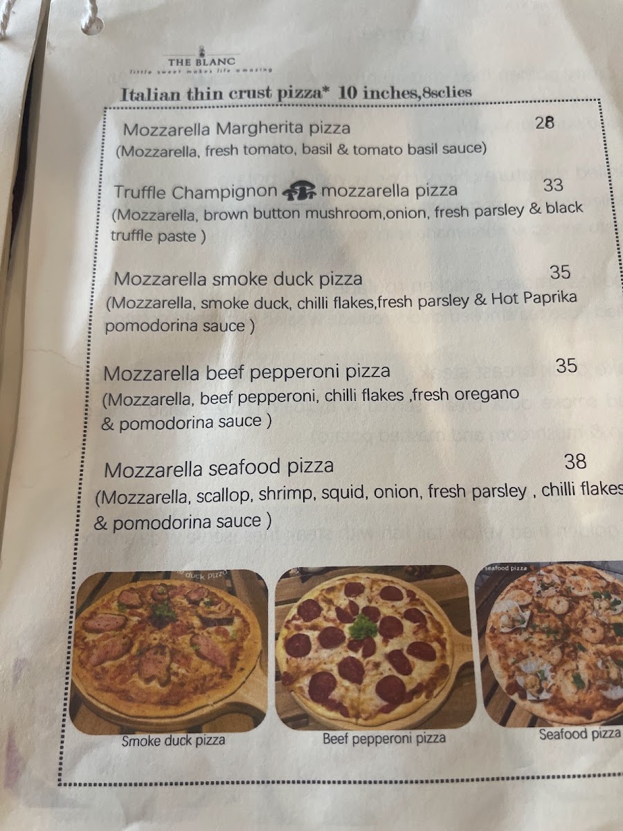 For diners seeking something more filling, the pasta selection stands out with flavorful options like seafood aglio olio, White wine creamy scallop fettuccine, truffle creamy mushroom fettuccine, and organic marinara seafood spaghetti, showcasing a balance between creamy indulgence and lighter, seafood-forward dishes. The entrée menu further completes the experience with comforting yet elevated choices such as truffle creamy mushroom soup, organic tomato basil creamy soup, cheddar turkey ham croissant w salad, Croque Monsieur, and the hearty cheddar fried chicken burger w fries. Overall, The Blanc Cafe’s menu feels cohesive and satisfying, making it a strong choice for both casual coffee visits and full, well-rounded meals.