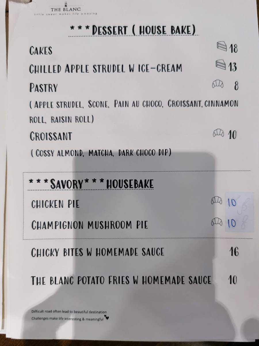 From a reviewer’s perspective, the menu at The Blanc Cafe offers a well-balanced and thoughtfully curated selection that blends comforting classics with refined café-style creativity. The dessert section is particularly inviting, featuring cakes such as Pinky Lady, pistachio yogurt cake, onde onde cake, and Satu Malaysia triple choco, each appealing to different taste preferences, from light and nutty to rich and indulgent. Their pastry range, including Butter Fluffy Croissant, Apple struddle, Scones w lemon Cream Cheese, hazelnut choco Eclairs, and Savoury pie, reflects a strong European influence and pairs perfectly with a relaxed café experience.